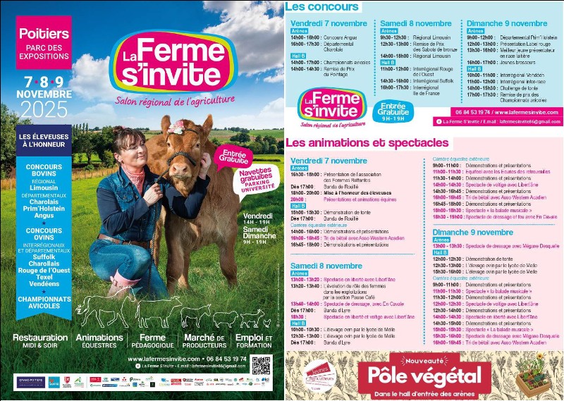 Retrouvez-nous, à La Ferme s'invite, du 7 au 9 Novembre prochain, sur notre stand, au marché en extérieur, au Parc des Expositions de Poitiers !
